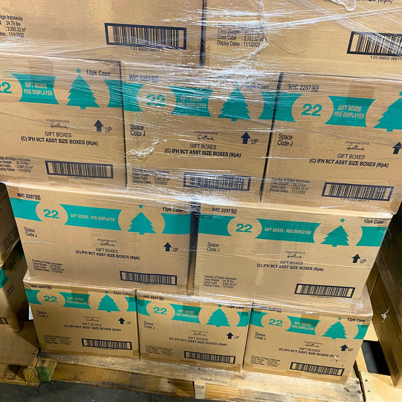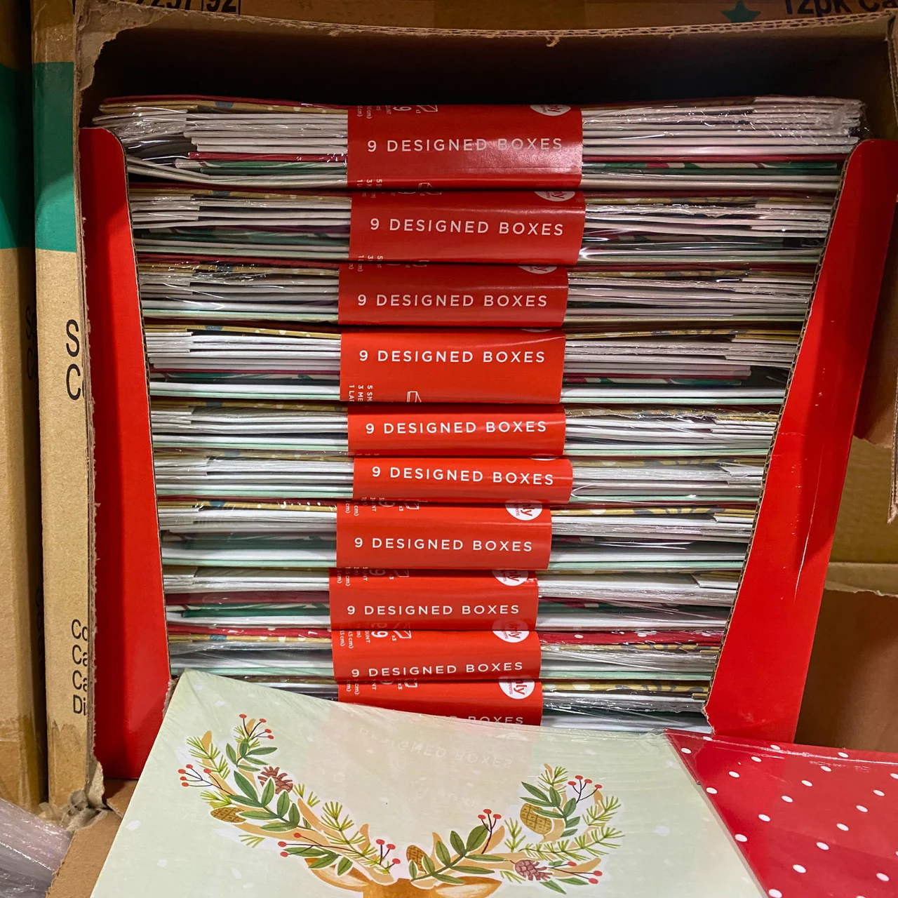 Inspirations from HALLMARK 9ct GIFT BOXES SET (336 Pcs Pallet) available here 9 gift boxes per set; Assorted sizes: small, medium, large; 28 cases per pallet; 12 packs per case (total 336 sets). Dimensions: 40X48X60